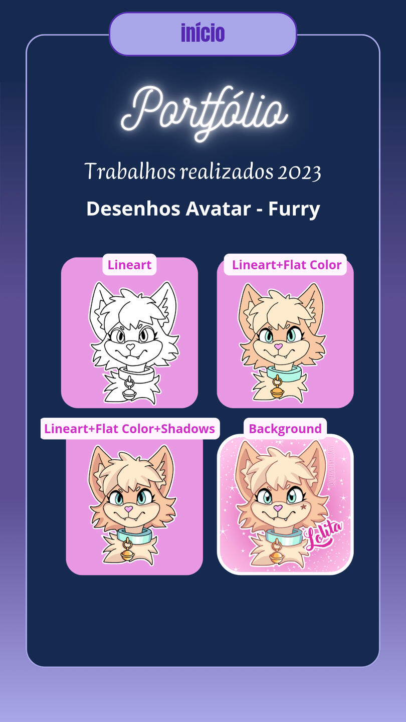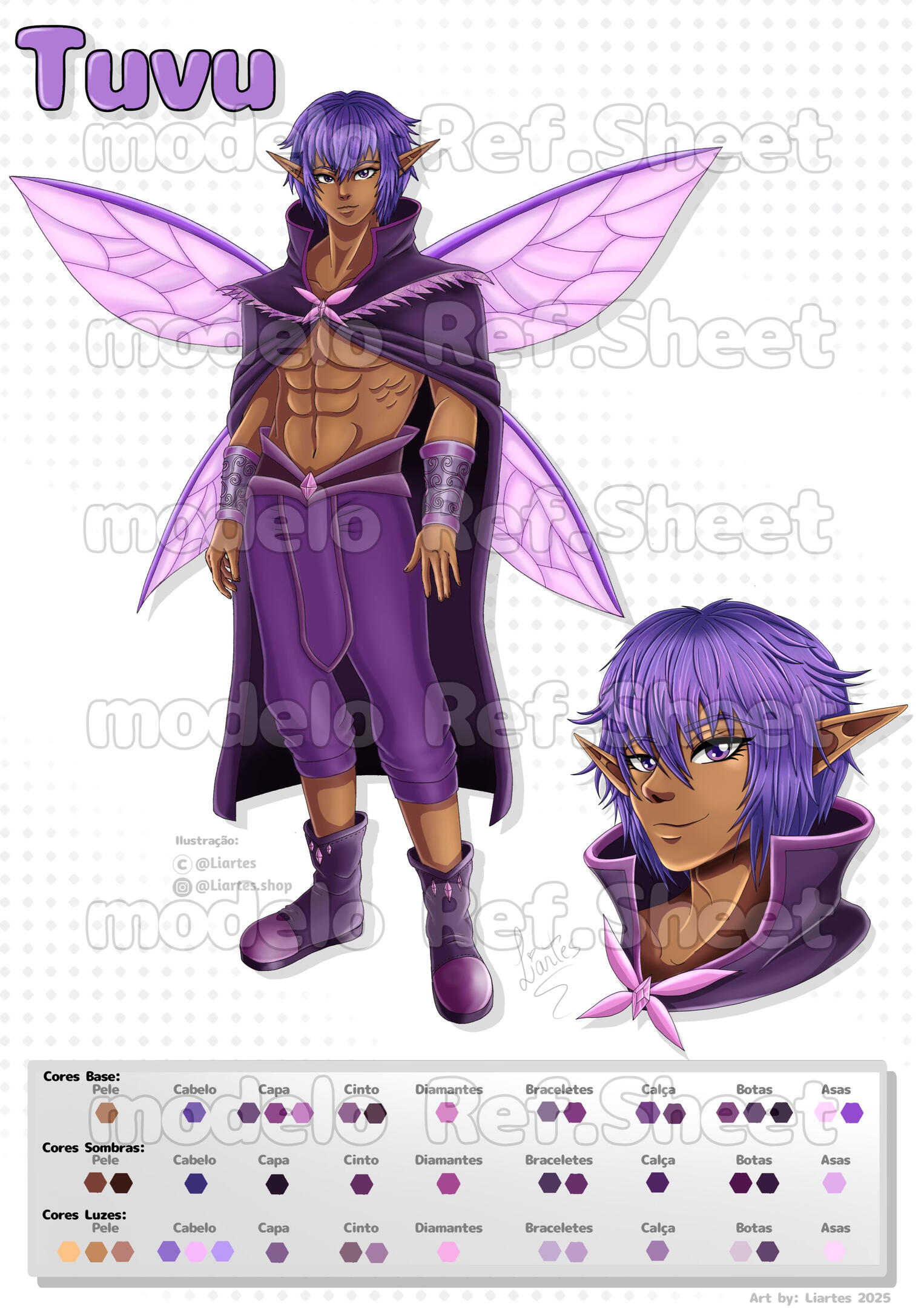 | Ref.sheet - modelo 4 (Premium) | R$200,00 | (1 personagem frente e costas + icon + nome e descrição + tabela de cores + Fundo personalizado) |