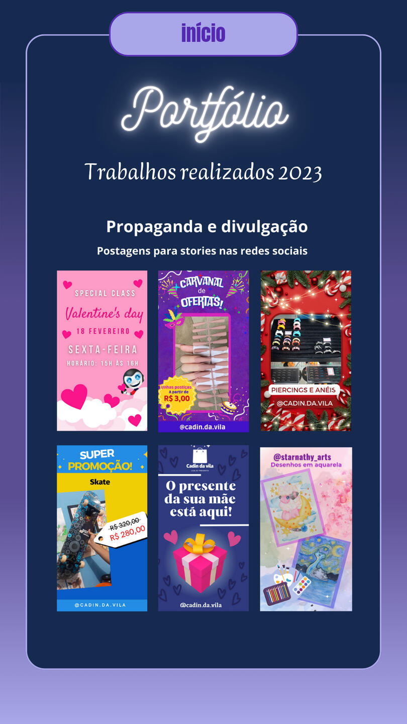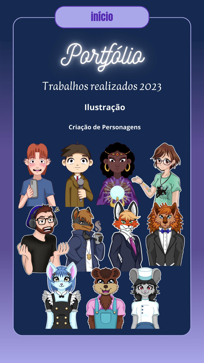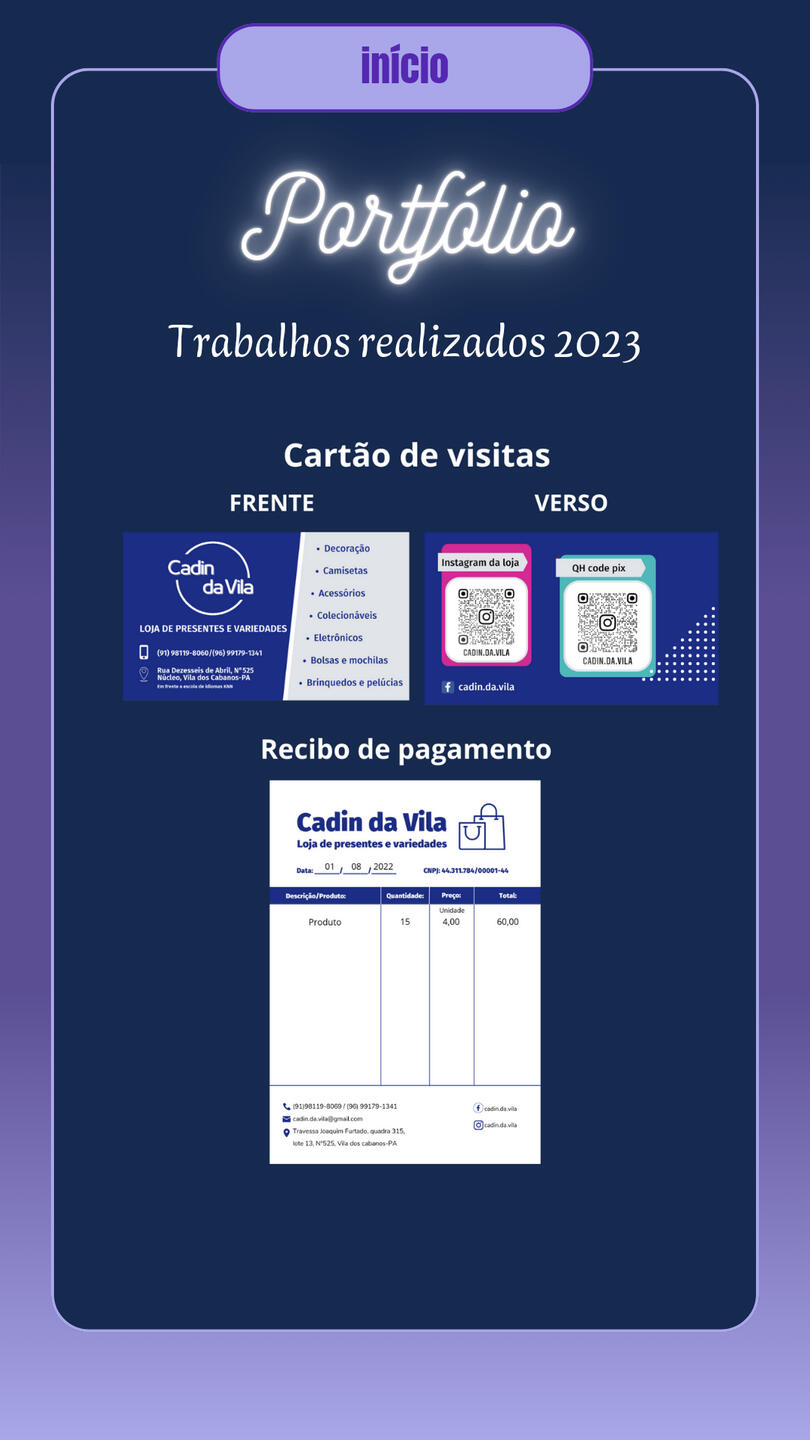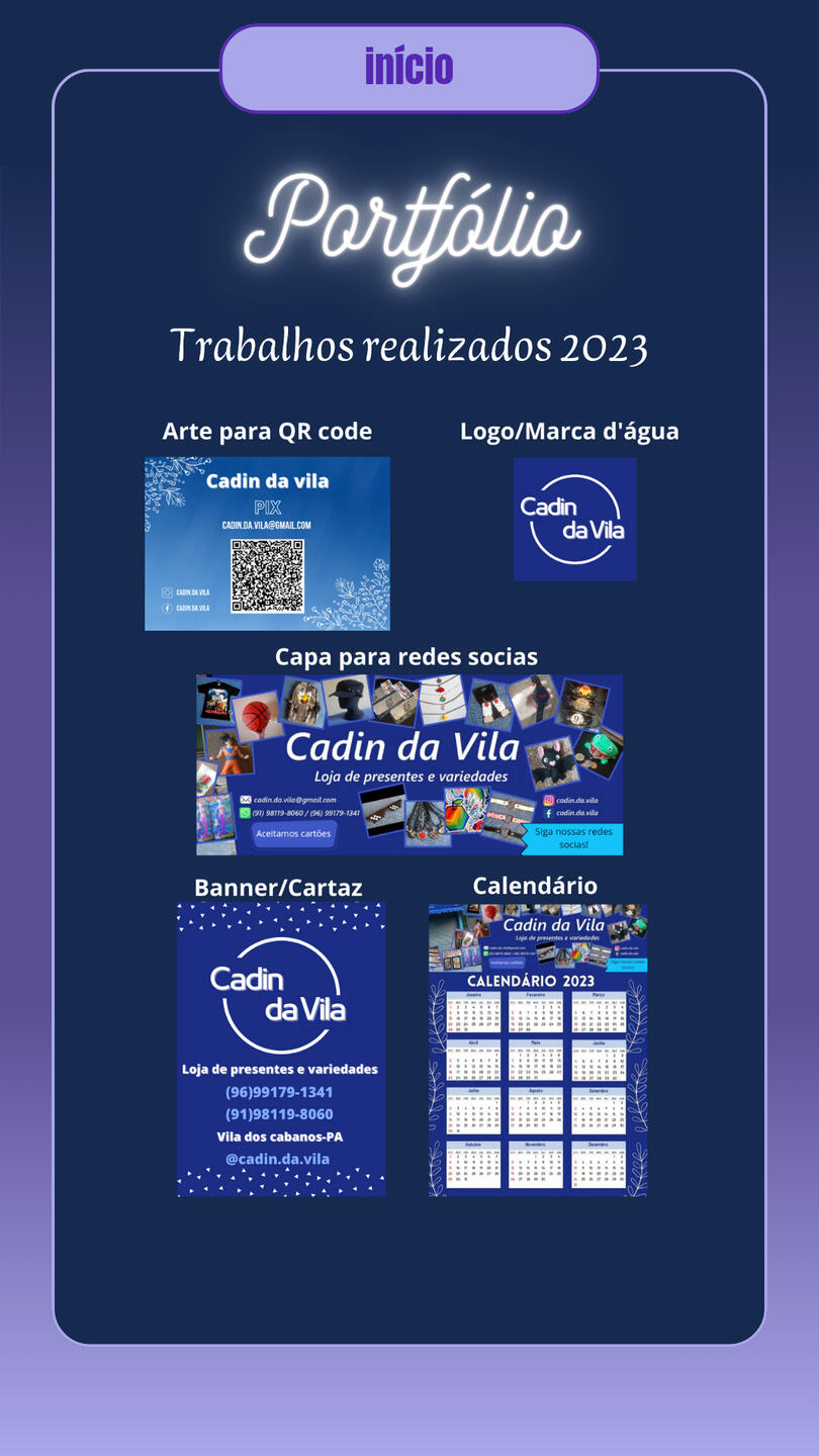 Designer de Marca Cadin da vila loja de presentes e variedades incluindo (Banner/Cartaz, Arte QR code, Logo simples, Calendário, Cartão de visitas, Capa para redes sociais, Marca d'água, Recibo de Pagamento, propaganda para redes sociais, postagem de promoções para redes sociais, vídeos para as redes sociais).Designer de cartões de visita, banners, cartazes, comunicados e etc, utilizados para a divulgação de lojas e serviços diversos.Criação de capas para Livros e E-books diversos.Projeto de criação de histórias em quadrinhos "JORNAL ONLINE" e "VIAGEM AO LIMBO" incluindo (Designer de personagens, ilustração, criação da história e narrativa, edição, montagem e manipulação de imagens).Ilustração digital de personagens para uso pessoal e comercial, Folha de referências, mascotes, personagens para quadrinhos, RPG, personagens para Jogos, Ícones personalizados, Arte personalizadas, ilustração Furry (Mascote) papel de parede personalizados e etc. Projetos de ilustração de PNGtubers e Vtubers incluindo criação, ilustração e designer de personagens