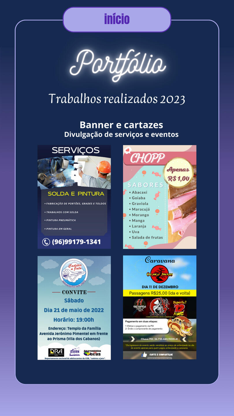 | Cartaz/Banner/Propaganda | a partir de R$ 50,00 | |