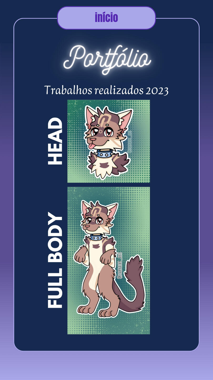| Ref.sheet - modelo 1 (Simples) | R$70,00 | (1 personagem + nome e descrição) |