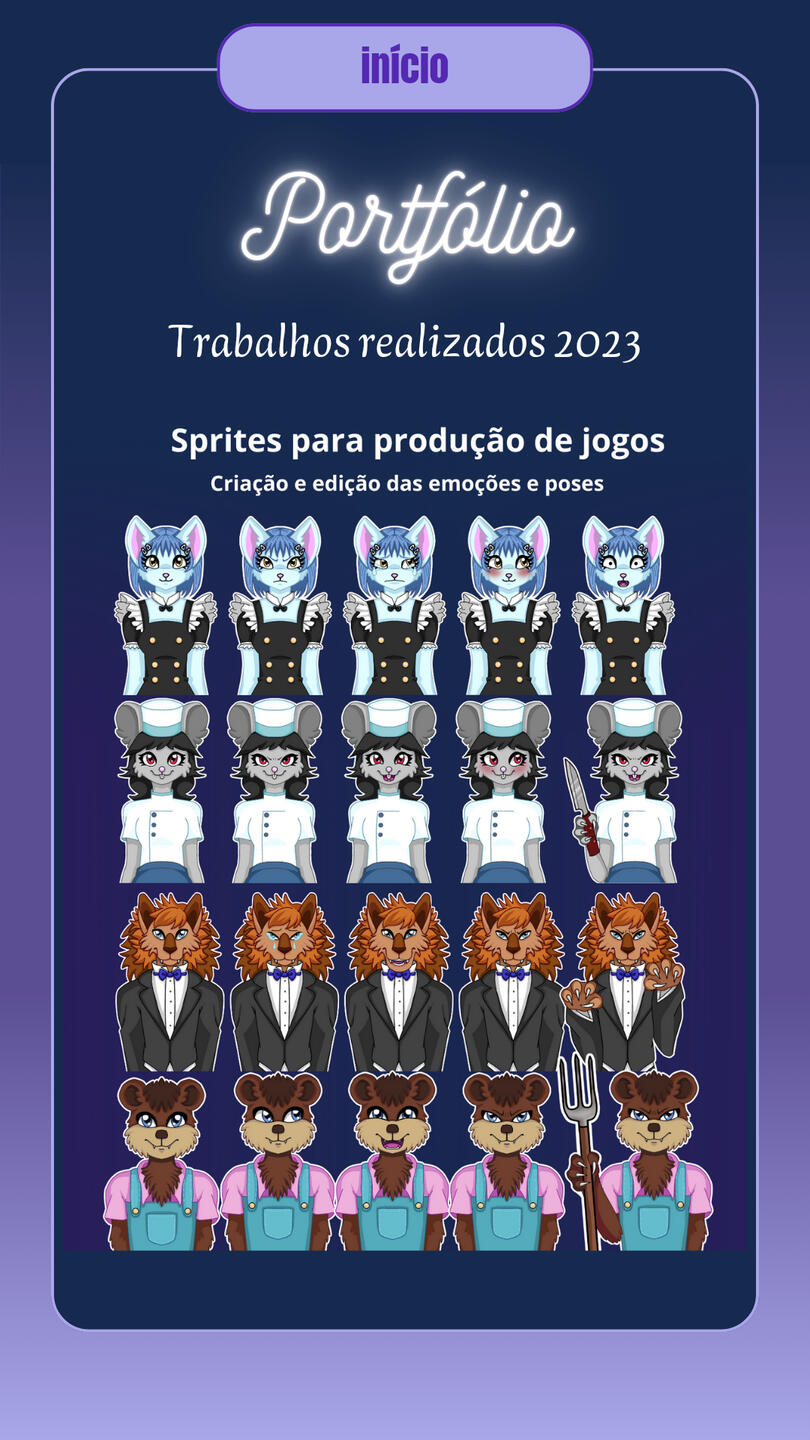 | Sprites para Visual Novel | a partir de R$150,00 | (4 emoções) |