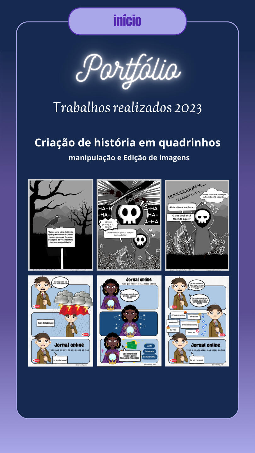 | Tirinhas / Quadrinhos (Simples) | a partir de R$ 150,00 | (1 Página. 3 a 4 tirinhas) |